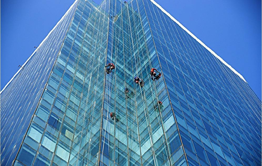 杭州外墻清洗是高空作業的一種,是一種危險的保潔項目,外墻清洗不僅要做到清洗物的干凈整潔,更重要的是要確保高空清洗技術人員的人身安全。這就要求保潔公司的施工人員有著非常豐富的高空清洗實踐操作經驗,并有良好的管理團隊和過硬的安全保護措施。先解決了施工工具的安全性,采用雙保險的跳板清洗方式,由專人負責現場施工,責任到人,嚴厲執行施工安全要求,杭州宏偉清洗在上百次的杭州外墻清洗施工中無任何事故。