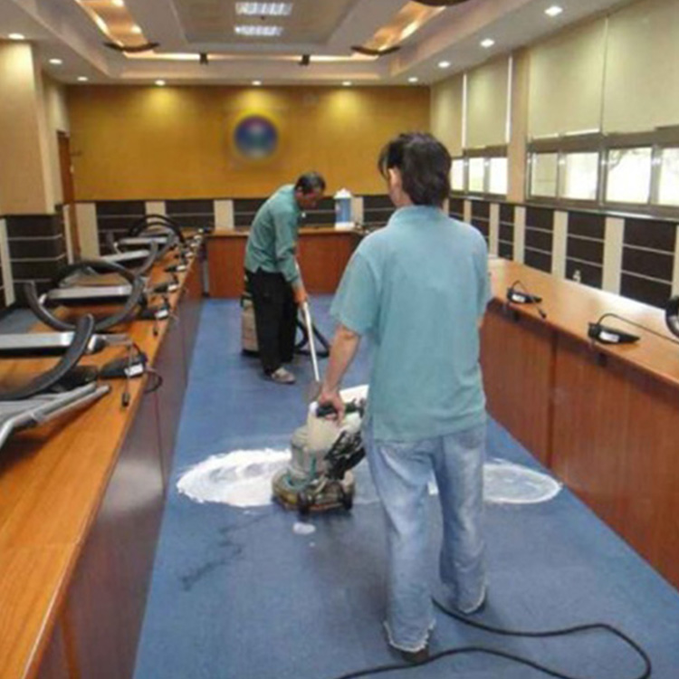 5、用裝有打泡器、地毯刷的單盤(pán)掃地機(jī)以干泡刷洗的方式清洗地毯,